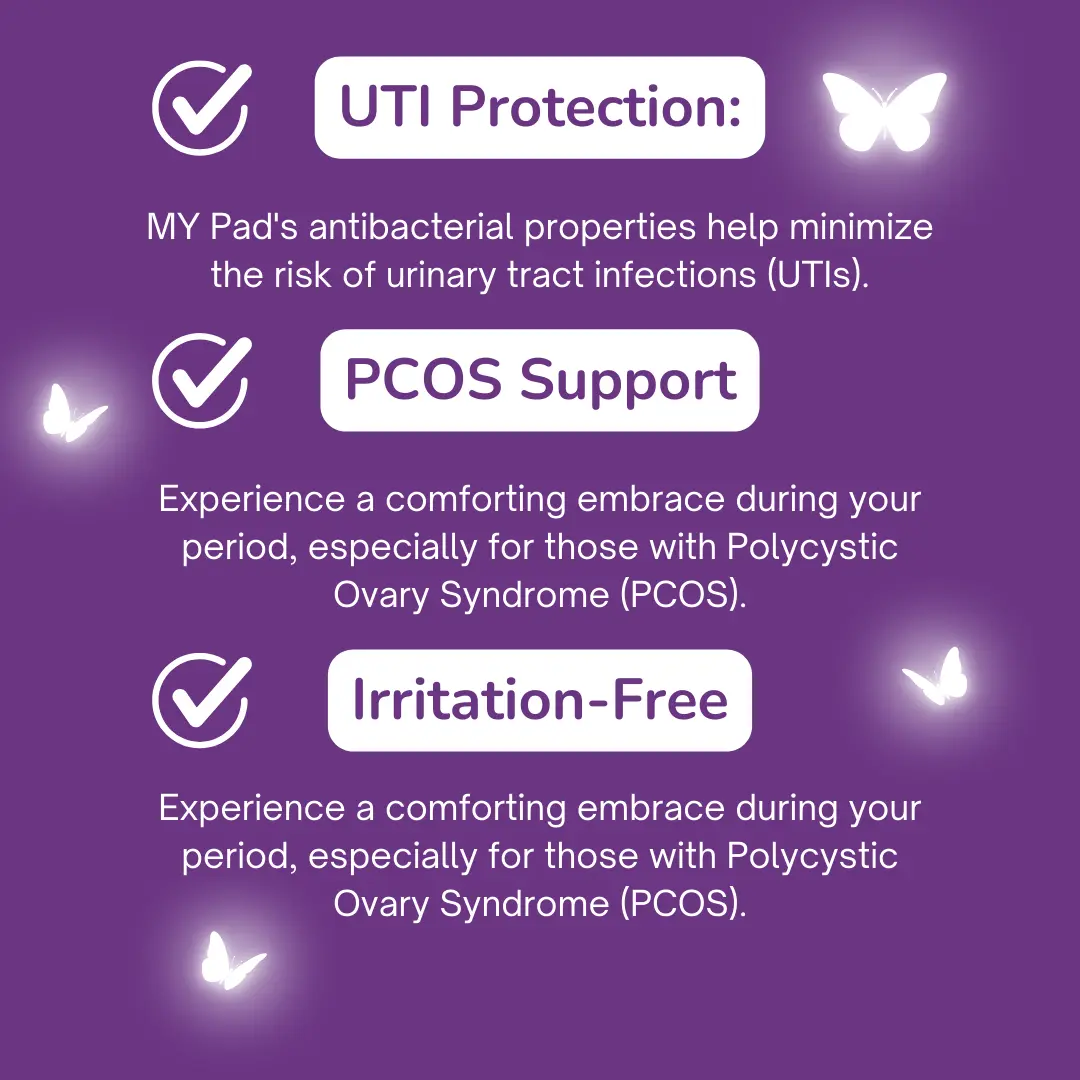 - UTI Protection: MY Pad's antibacterial properties help minimize the risk of urinary tract infections (UTIs).