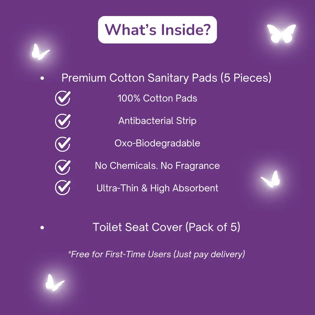 Our pads are crafted with care using chemical-free, fragrance-free, Oxo-biodegradable materials, ensuring they are safe for your body and kind to the environment. Designed for real comfort, each pad offers leak-proof, rash-free, and breathable protection you can trust.