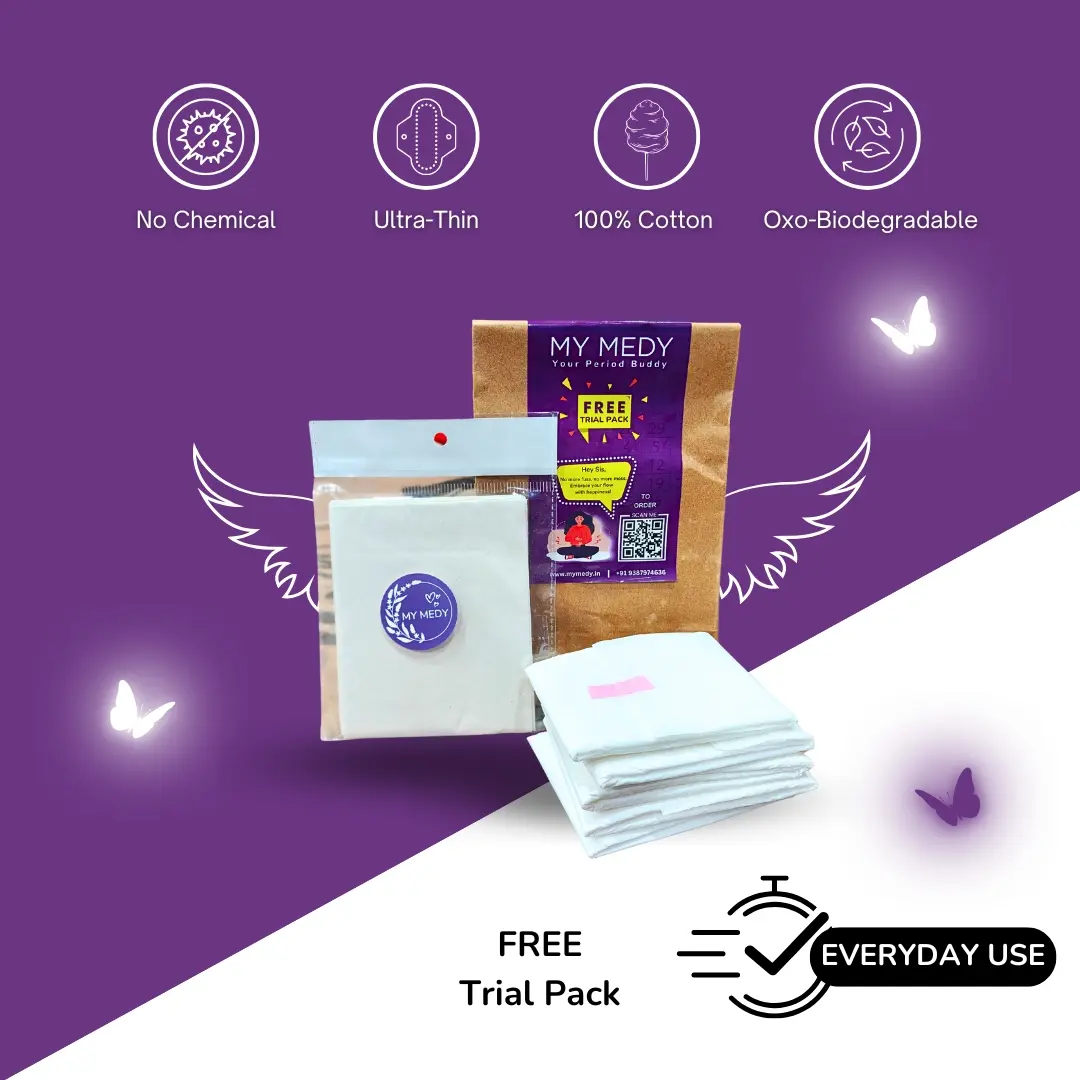 Discover the comfort and care you deserve with MY MEDY’s Free Trial Pack — specially curated for first-time users who wish to experience a healthier, more hygienic period.